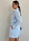 A crisp, coordinated two-piece that blends classic tailoring with warm-weather ease — this set features a structured button-up shirt and high-waisted shorts for a polished yet relaxed silhouette.