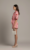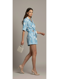 This is our Tropical Print Short Sleeve Button-Up Shirt and High-Waisted Shorts Set