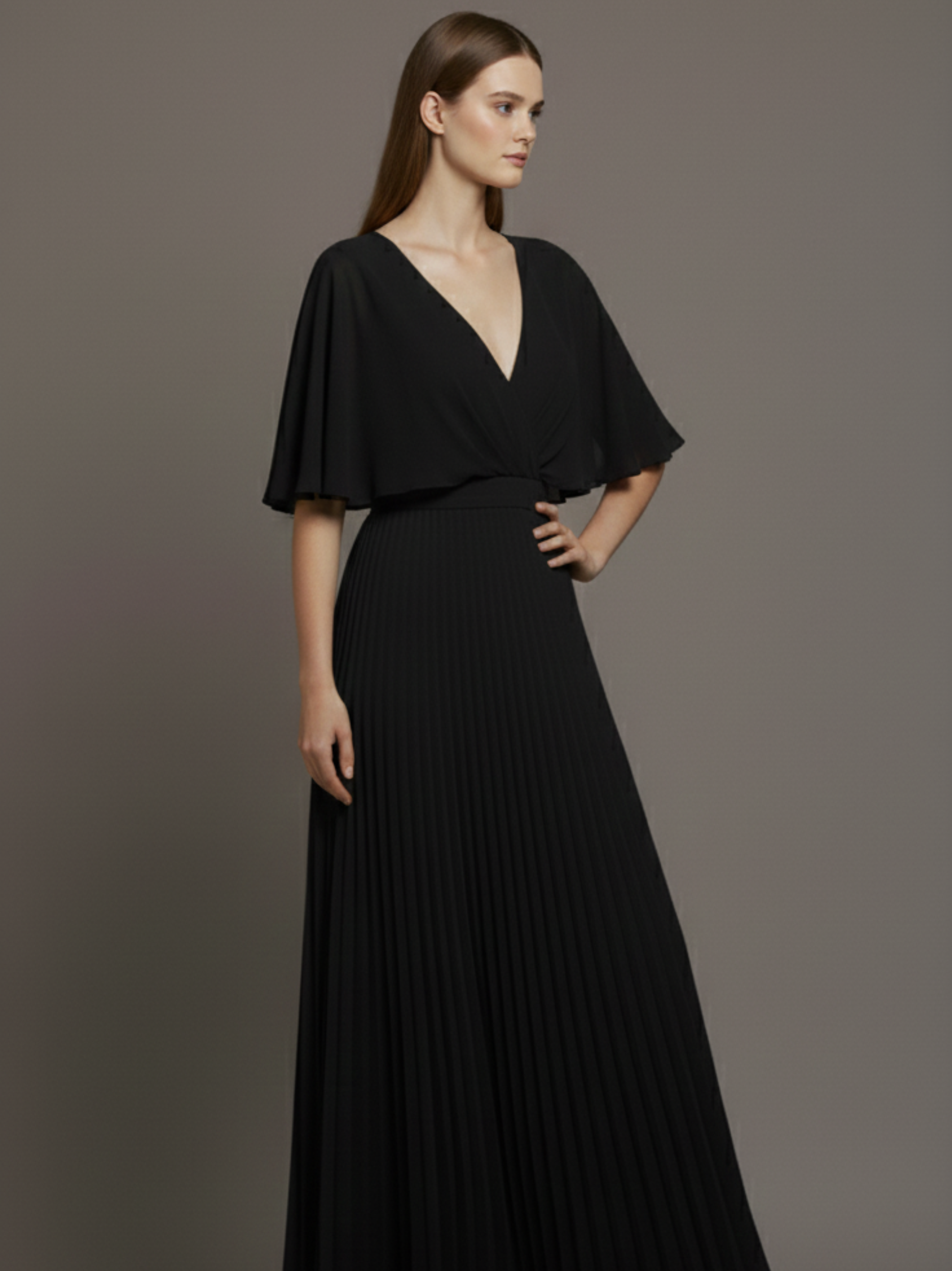 Este es nuestro vestido de noche de gasa verde suave de Elowen