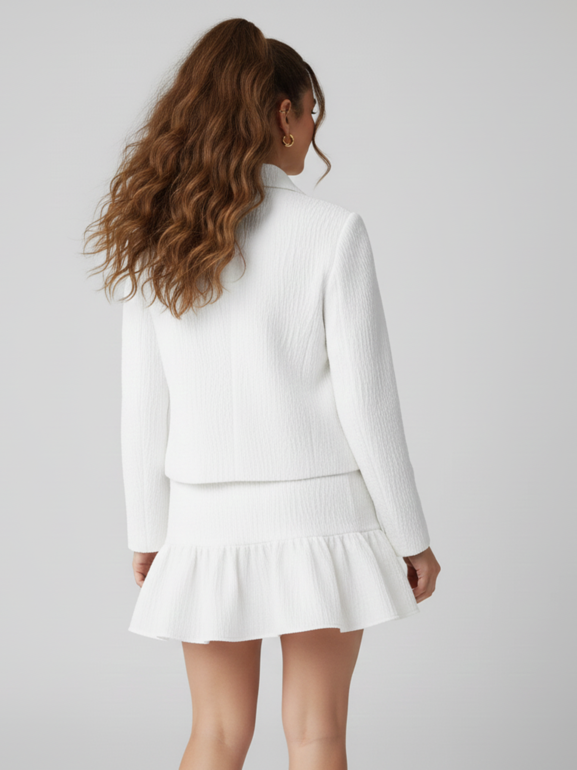 Un ensemble raffiné conçu pour apporter sophistication et charme à votre garde-robe. Cet ensemble coordonné comprend une jupe tutu volumineuse et un haut élégant à manches longues, idéal pour ajouter une touche d'élégance à toutes les occasions.