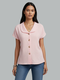Détails : Manches courtes, col souple, fermeture boutonnée sur le devant, style décontracté chic