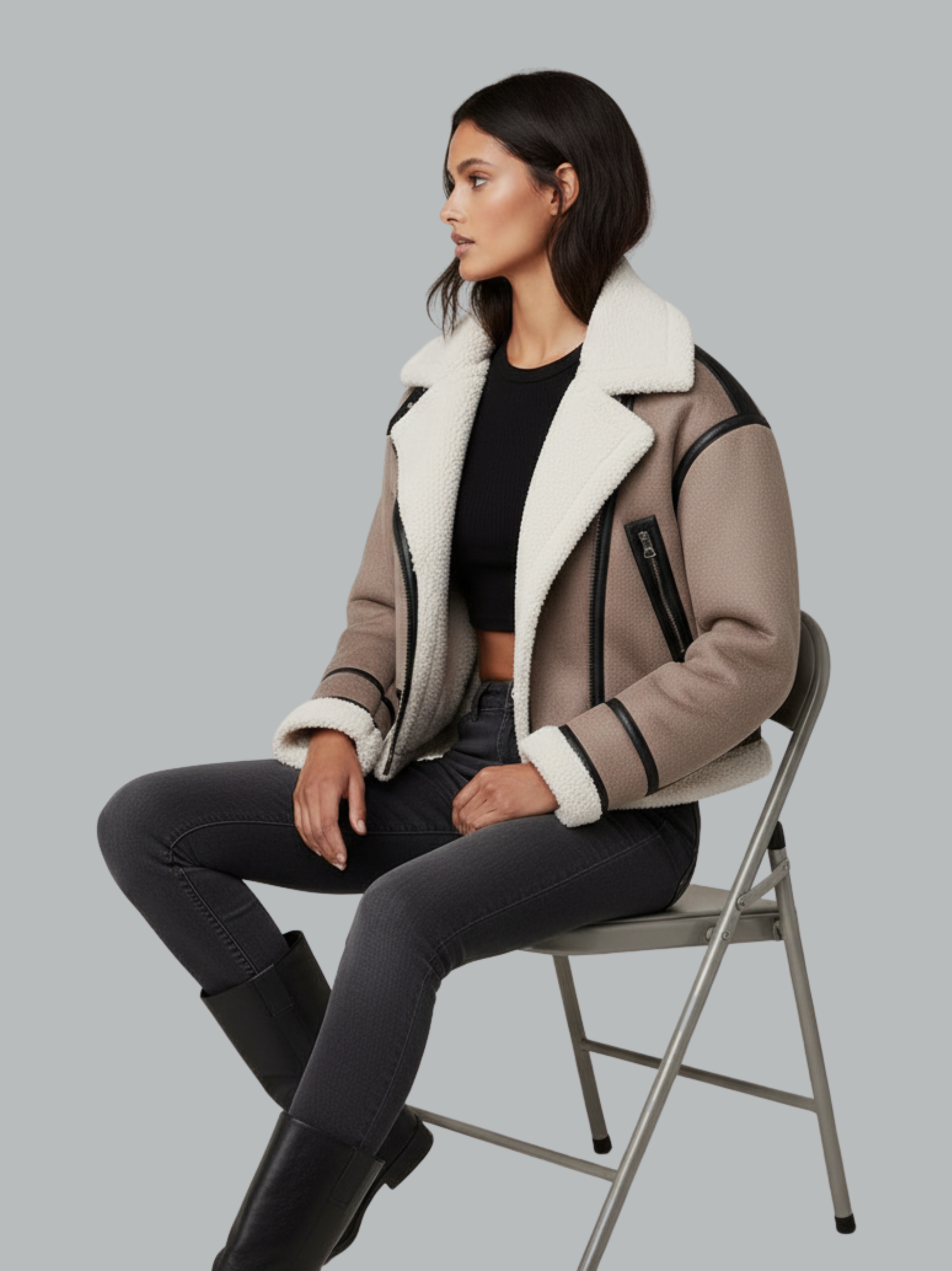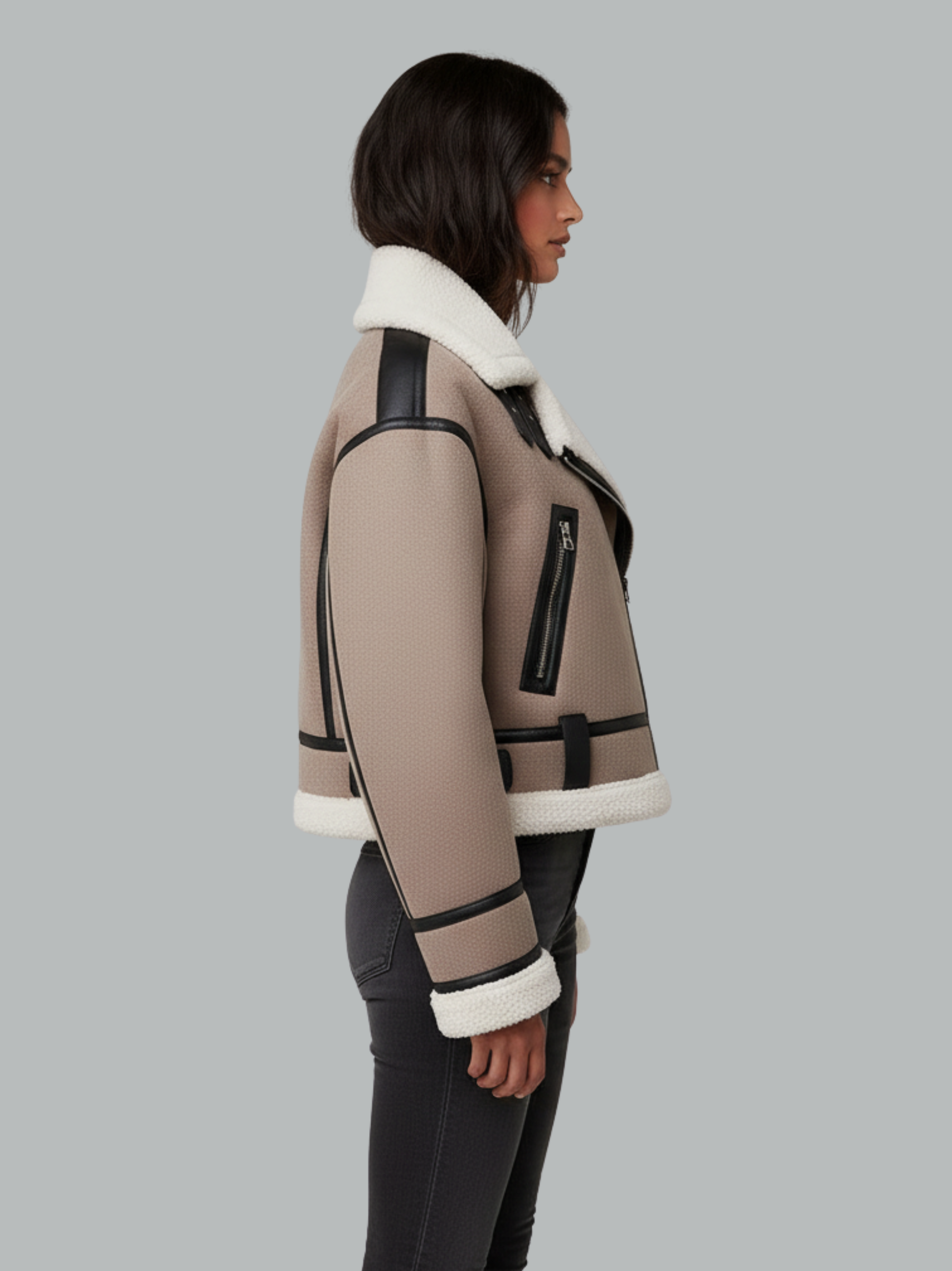 Audacieuse, chaude et indéniablement tendance, cette veste aviateur courte allie style urbain et douceur luxueuse grâce à sa doublure en peau lainée.