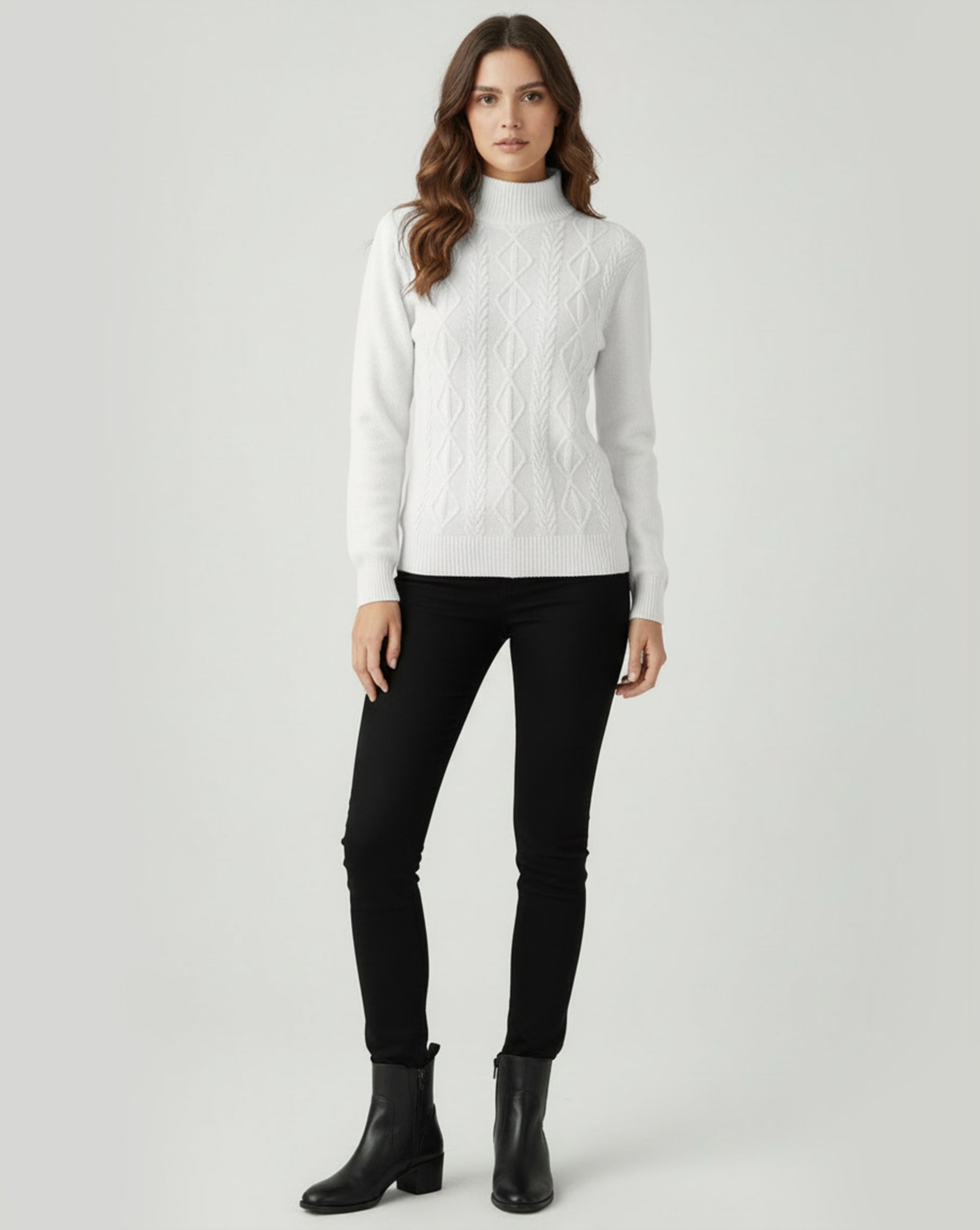 Quand un design intemporel rencontre une élégance confortable. Ce charmant pull est idéal pour ajouter une touche d'élégance à vos tenues quotidiennes tout en vous gardant bien au chaud et à l'aise.