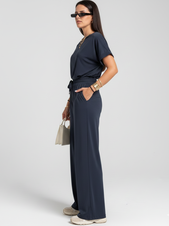 Un ensemble confortable et polyvalent, confectionné en coton doux pour le quotidien. Ce set coordonné se compose d'un pantalon en coton et d'un haut décontracté, idéal pour un style et un confort sans effort en toute saison.