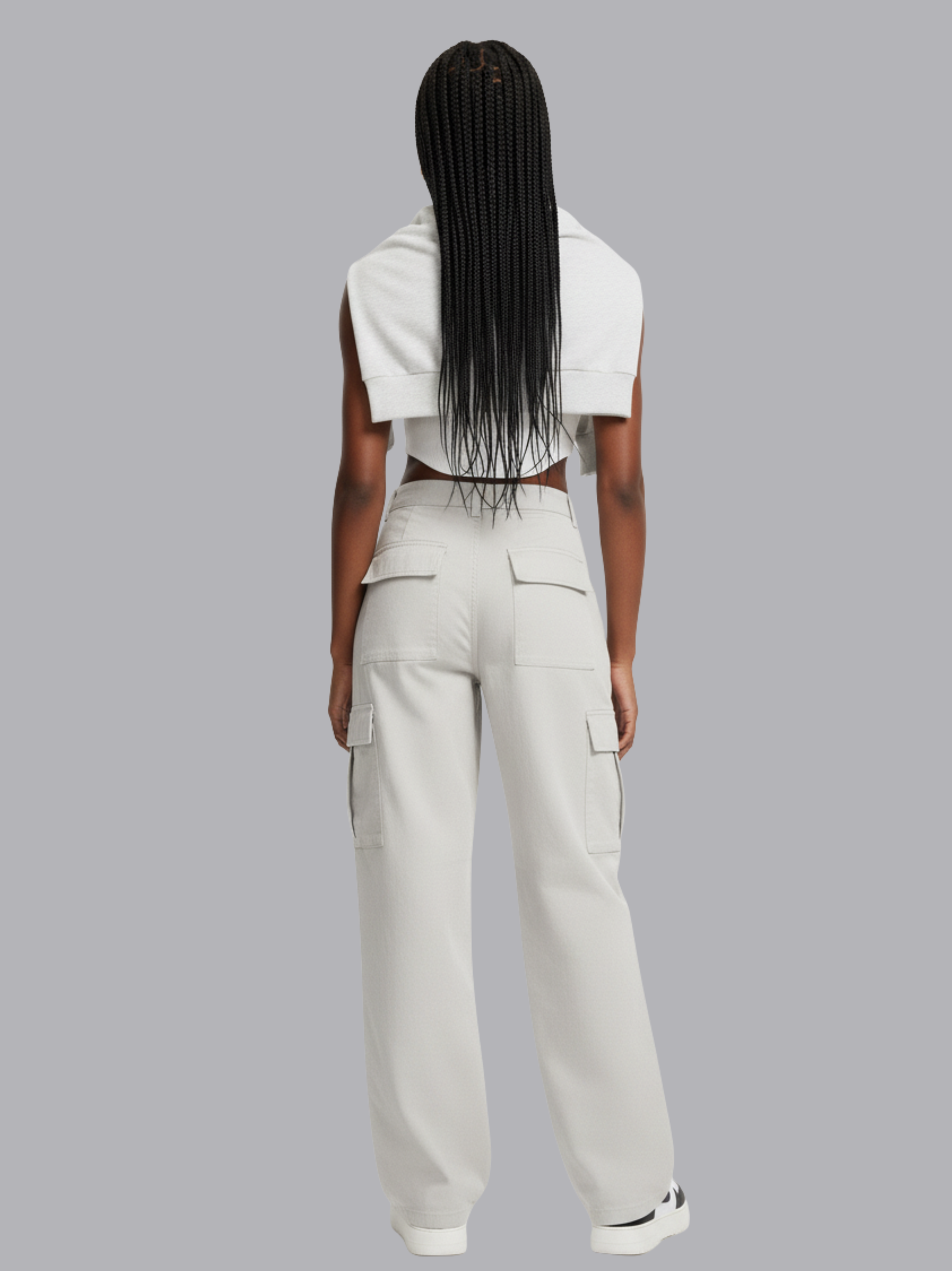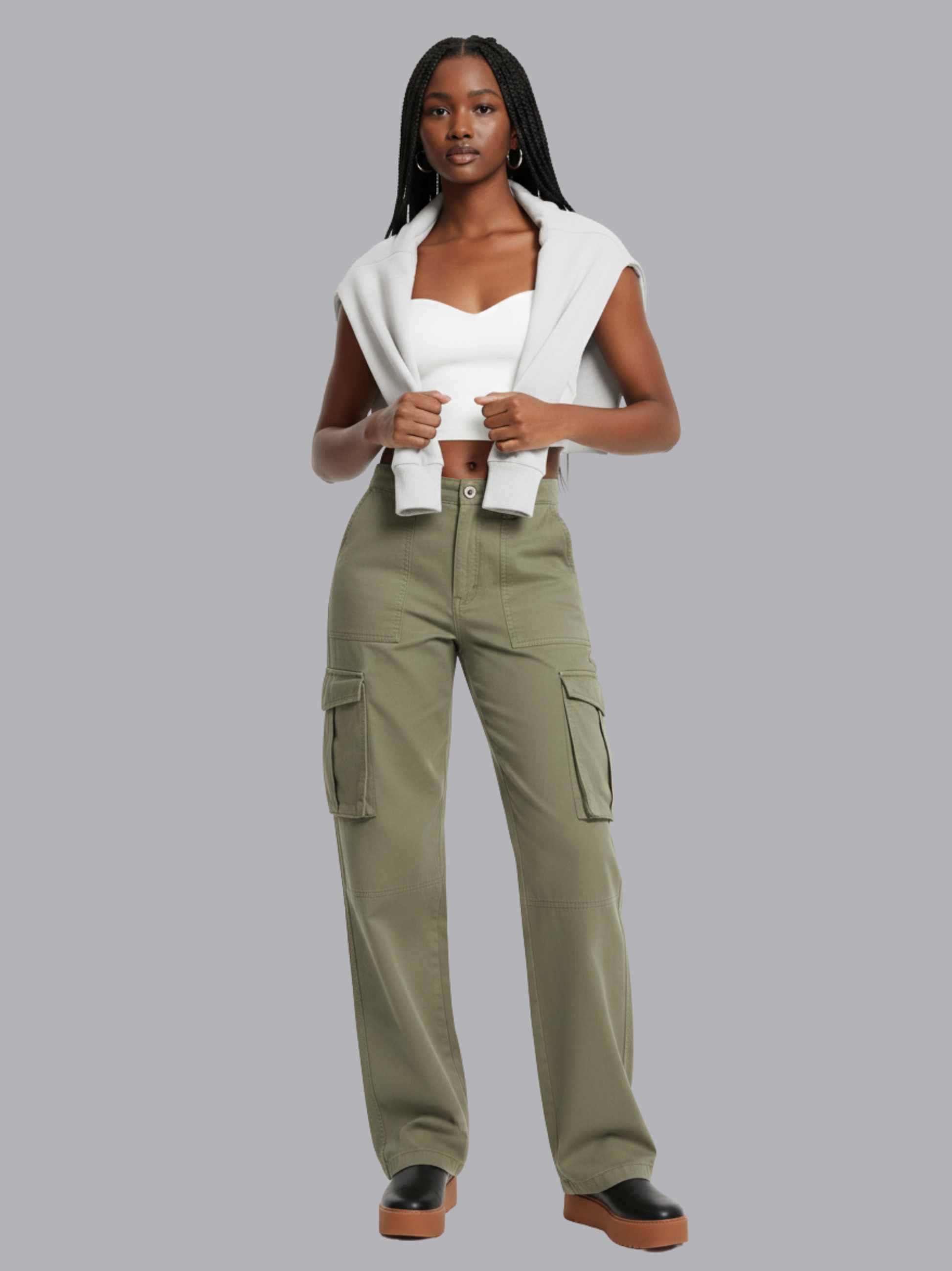 Voici notre pantalon cargo à taille ajustable et jambes droites