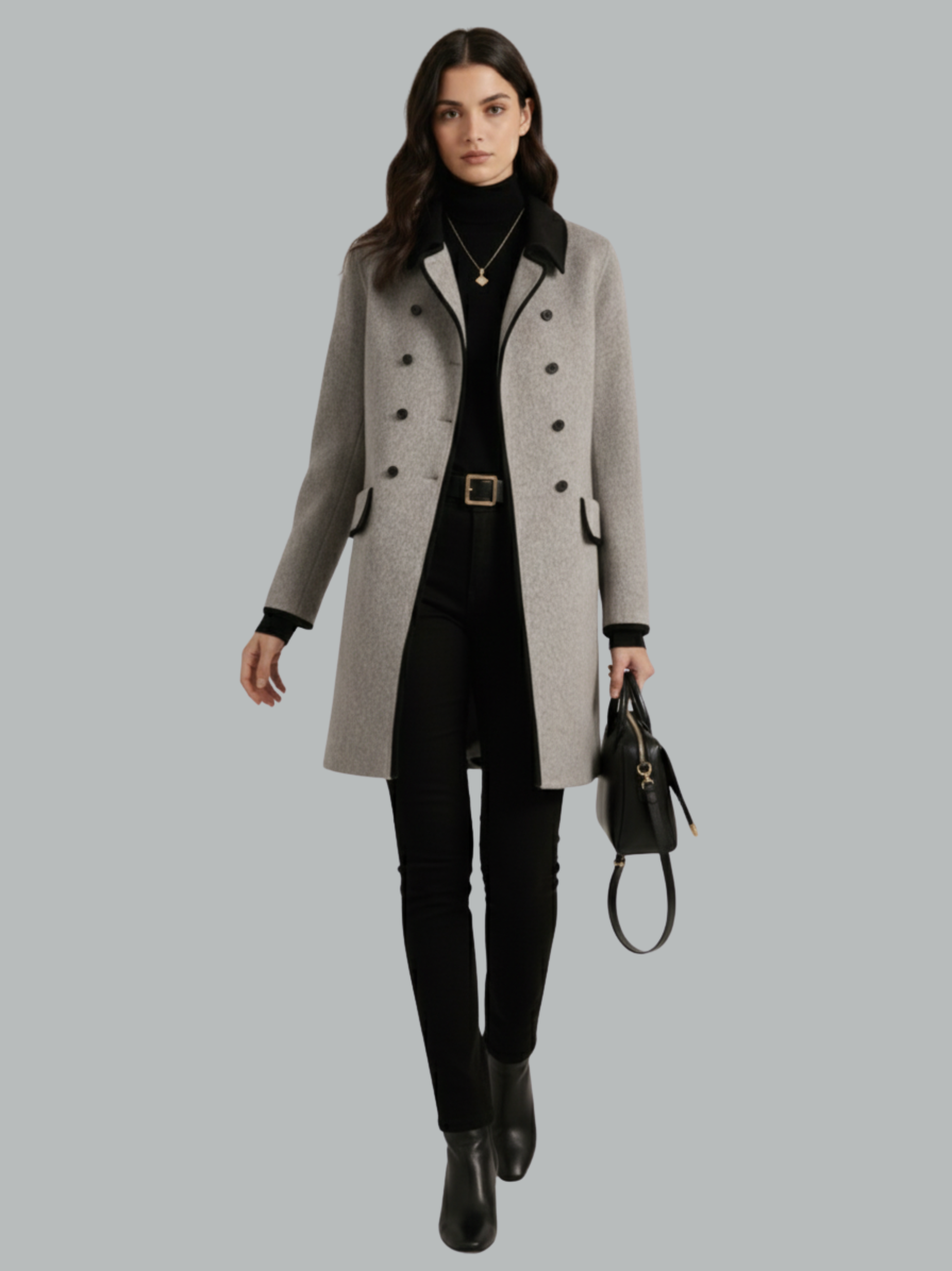D'une élégance naturelle, cette pièce essentielle et raffinée allie chaleur et modernité grâce à ses accents contrastés audacieux et sa coupe intemporelle.