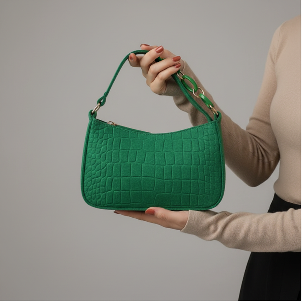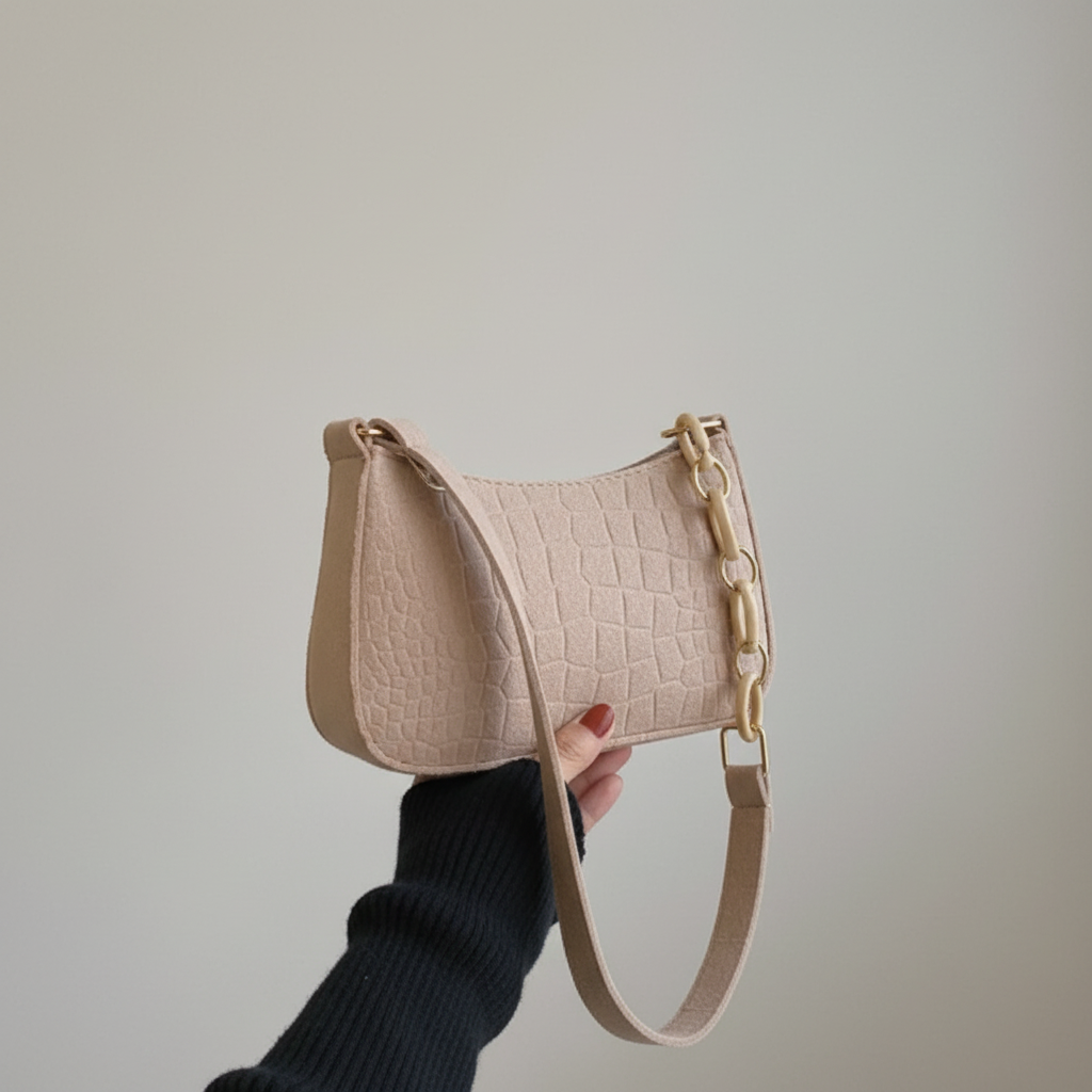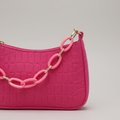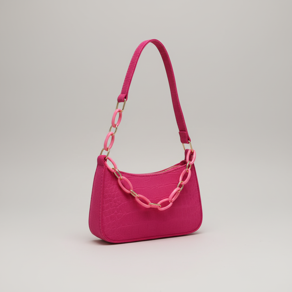 Bandoulière en chaîne métallique remarquable : La bandoulière en chaîne métallique audacieuse ajoute une touche moderne et avant-gardiste, faisant de ce sac un accessoire qui se démarque.