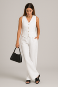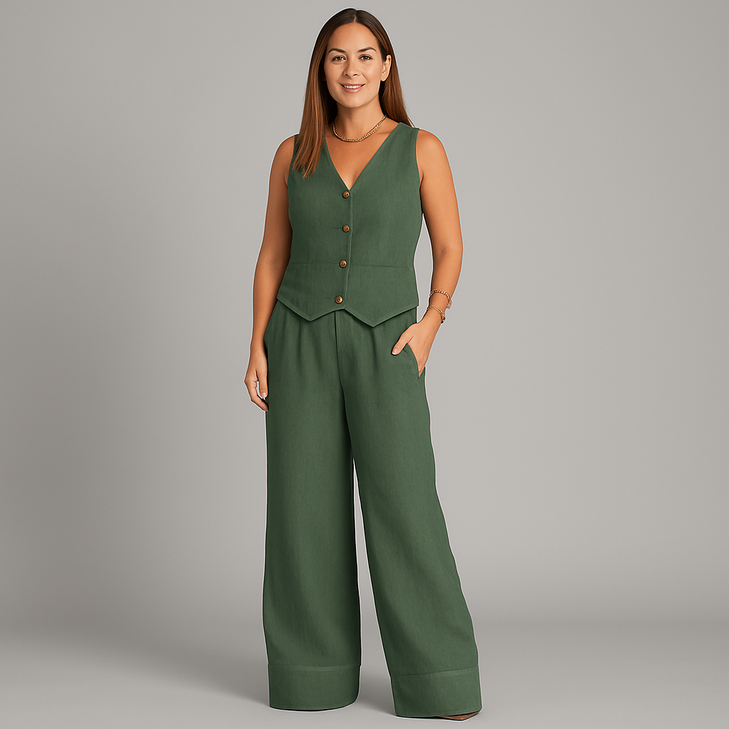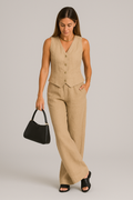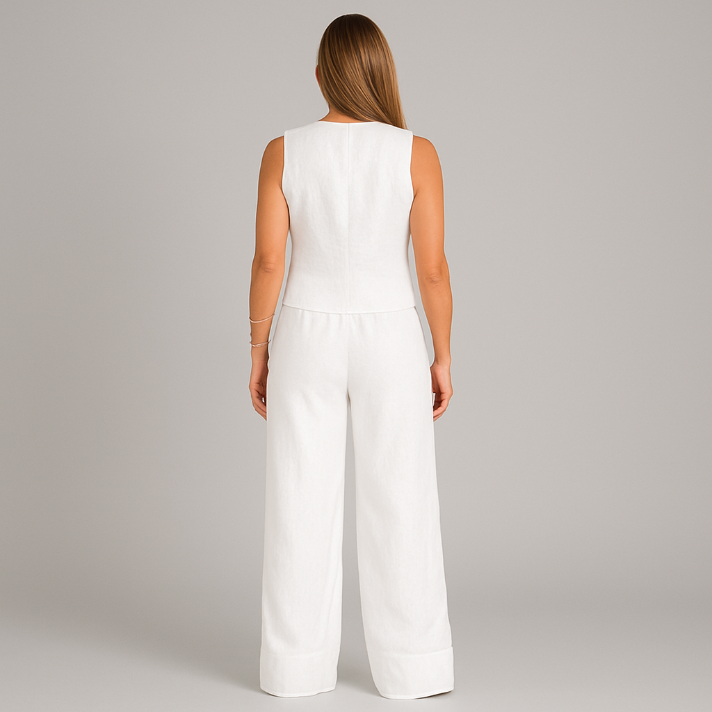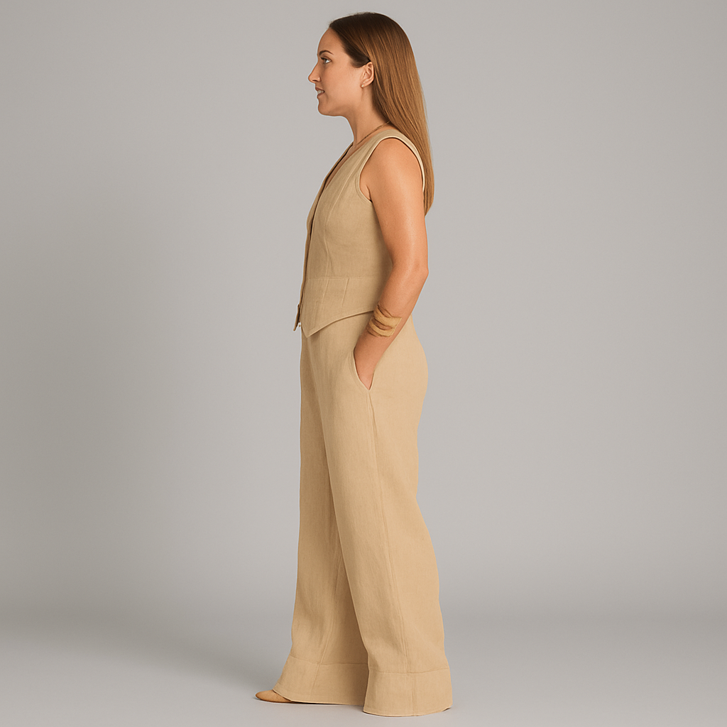 L'alliance parfaite d'un style décontracté et d'un confort optimal. Composé d'un débardeur chic et d'un pantalon assorti, cet ensemble est conçu pour vous garder au frais et élégante, que ce soit pour une sortie ou un moment de détente à la maison. Confectionné en lin respirant, c'est l'indispensable des beaux jours.