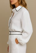 Un ensemble chic et polyvalent, conçu pour une élégance naturelle. Cet ensemble coordonné se compose d'une jupe en lin et d'un haut à manches longues, tous deux confectionnés dans un lin de haute qualité pour un confort et un style irréprochables.