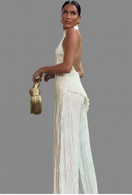 La tenue estivale par excellence : un ensemble deux pièces composé d’un haut dos nu chic et d’un pantalon assorti pour un look à la fois décontracté et tendance. Idéal pour les sorties estivales, cet ensemble est conçu pour vous garder au frais, à l’aise et élégante sans effort.