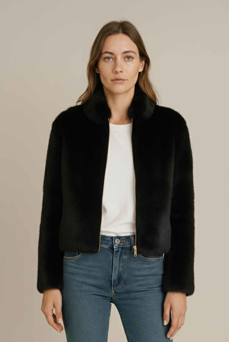 Entourez-vous d'élégance et de chaleur avec le Veste Nancy Elegant en fausse fourrure, col montant et fermeture éclair. Conçue avec un col montant élégant et une douce fausse fourrure, cette veste vous offre une allure élégante tout en vous tenant chaud. La fermeture éclair intégrale apporte une touche de modernité et permet d'ajuster la protection, ce qui la rend idéale à superposer à vos tenues préférées.
