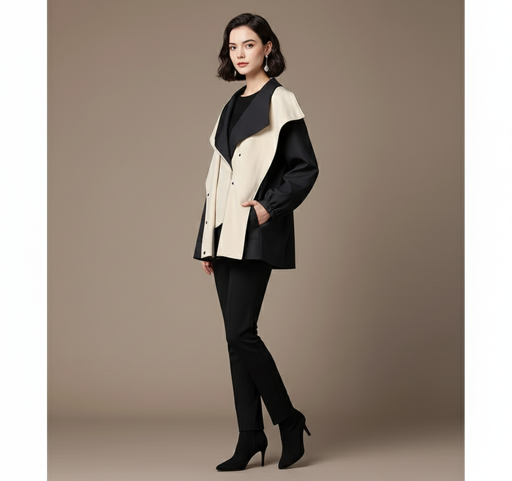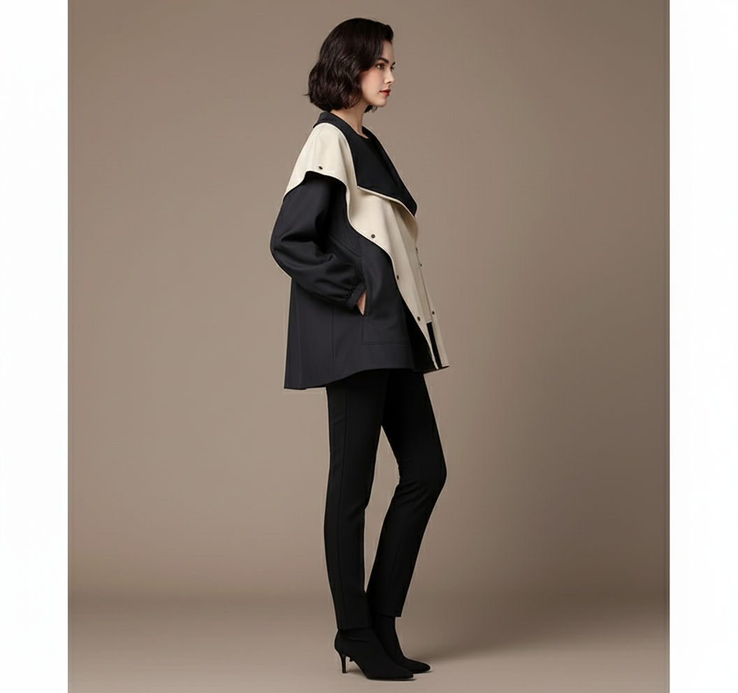 Conception à double couche : La construction unique à double couche ajoute de la profondeur et du style à la veste, offrant à la fois chaleur et esthétique contemporaine.