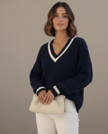 A timeless staple redefined in softness — this V-neck sweater slips seamlessly into any season and setting.