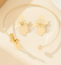 A charming duo that captures the delicate beauty of nature — this coordinated necklace and earring set features gold-tone flowers and butterflies, creating a graceful, feminine finish. It’s designed for women who love a little romance in their style.