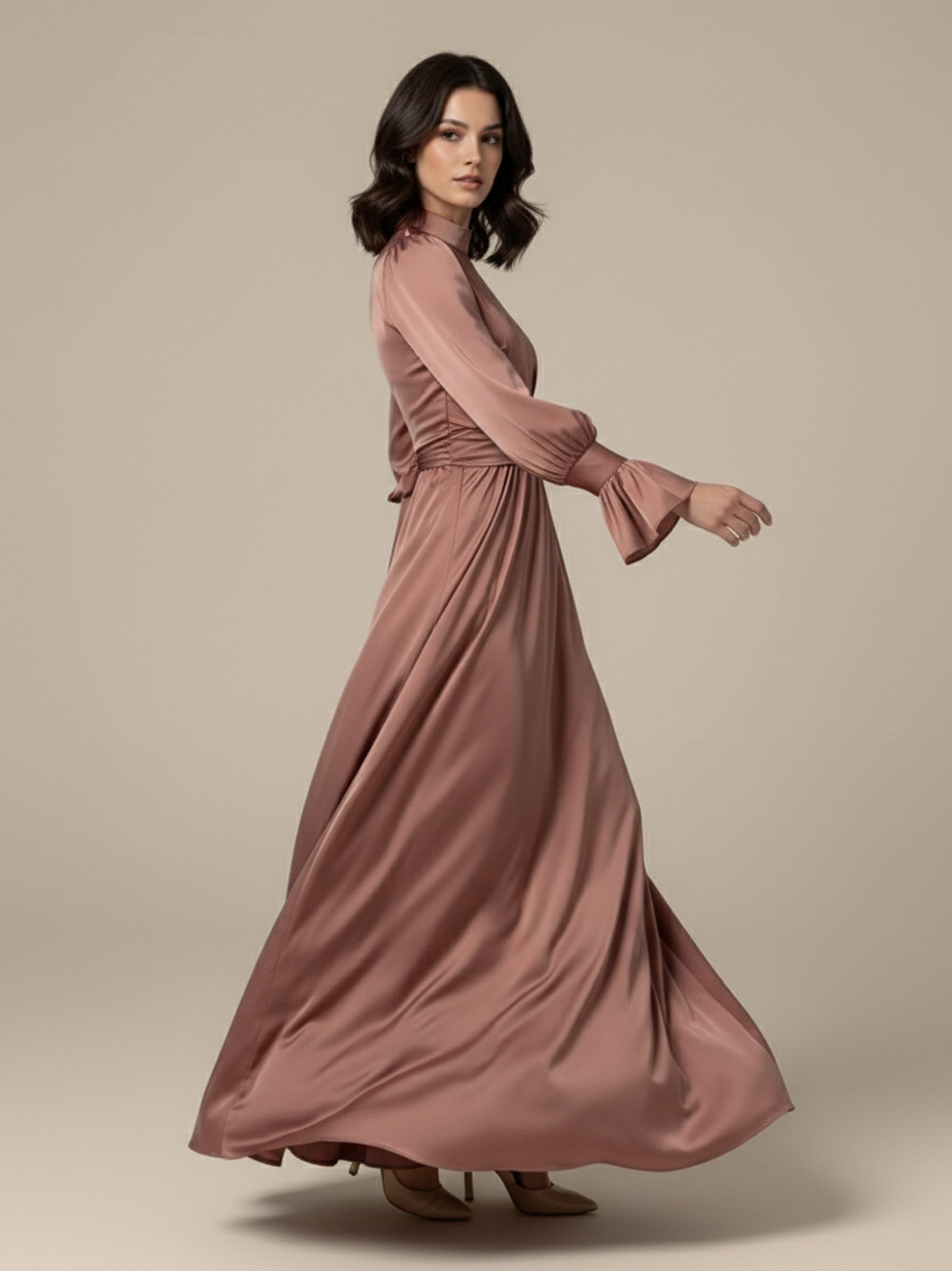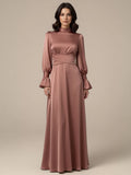 This is our Maria Coffee Long Sleeve Dress