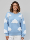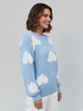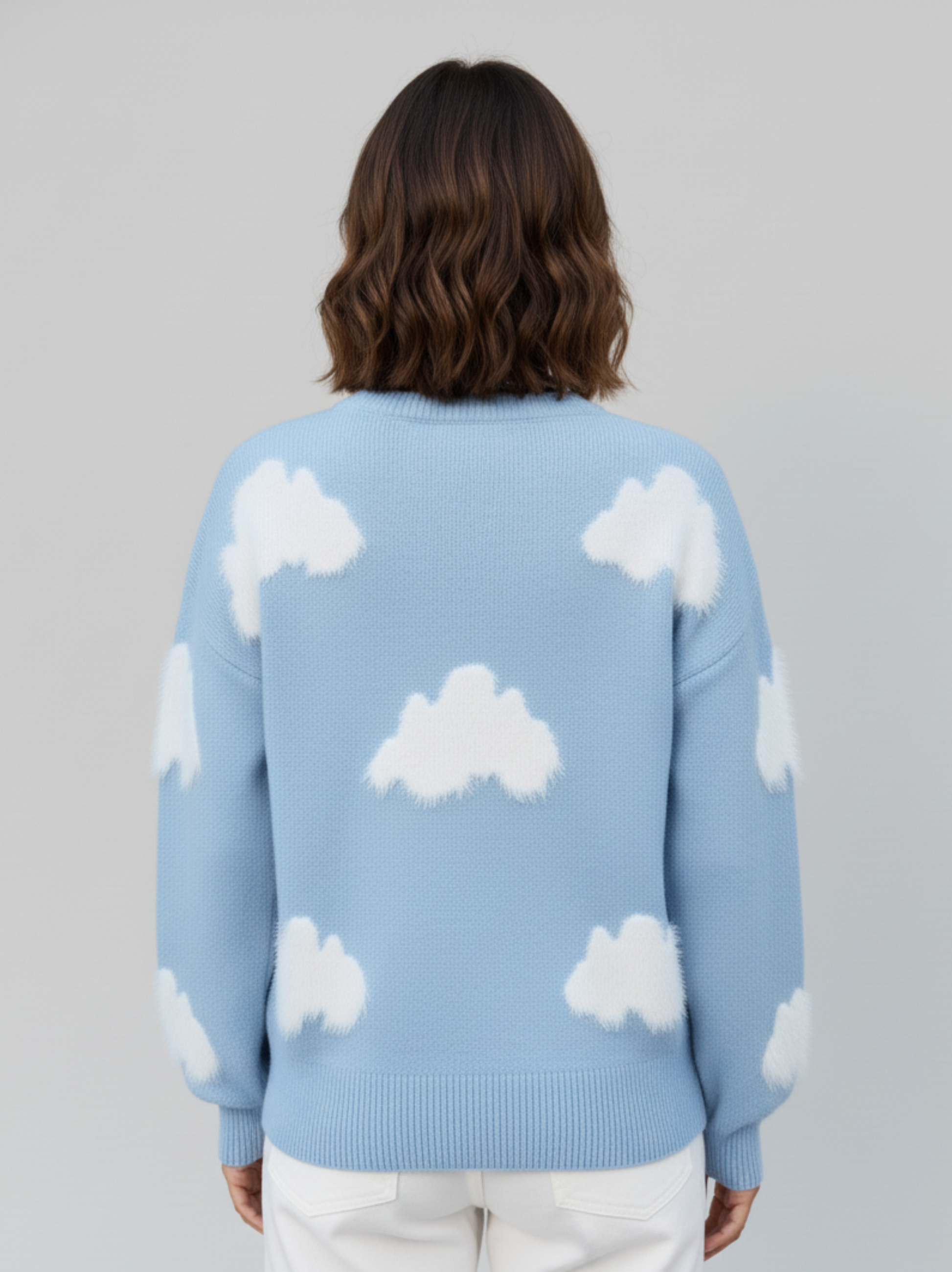 Este é o nosso pulôver Judy com estampa de nuvens.