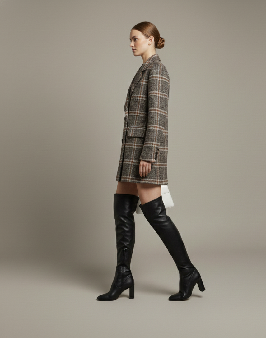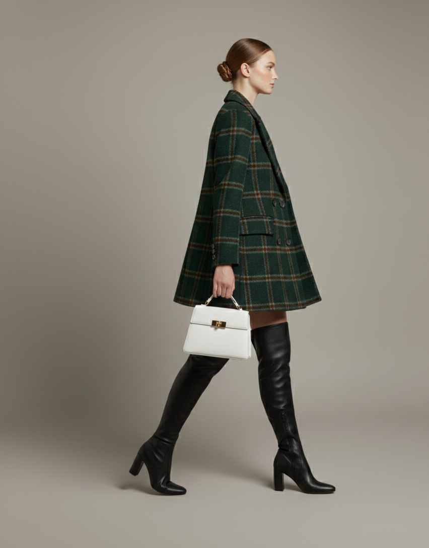 • Estética Xadrez Suave: Os padrões xadrez sutis oferecem um apelo atemporal, tornando o casaco incrivelmente fácil de combinar com jeans, saias ou calças de pernas largas.