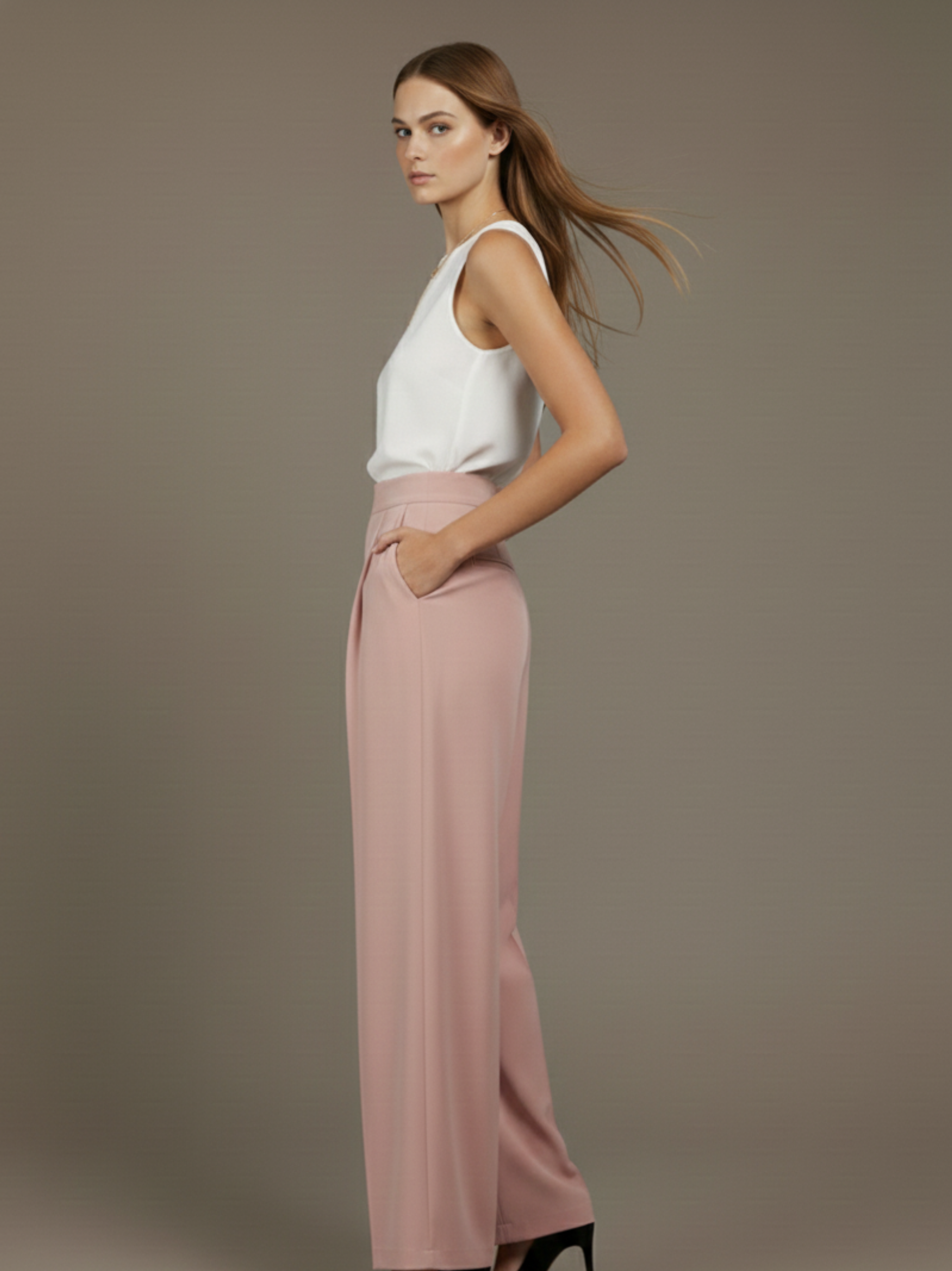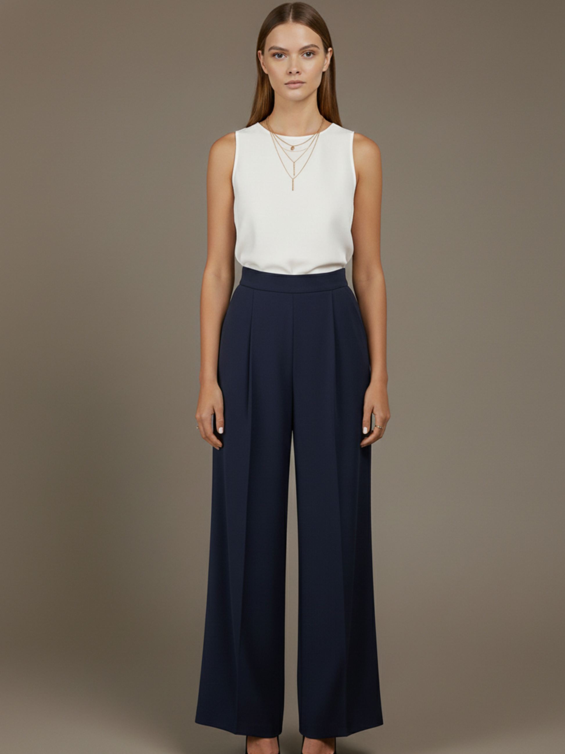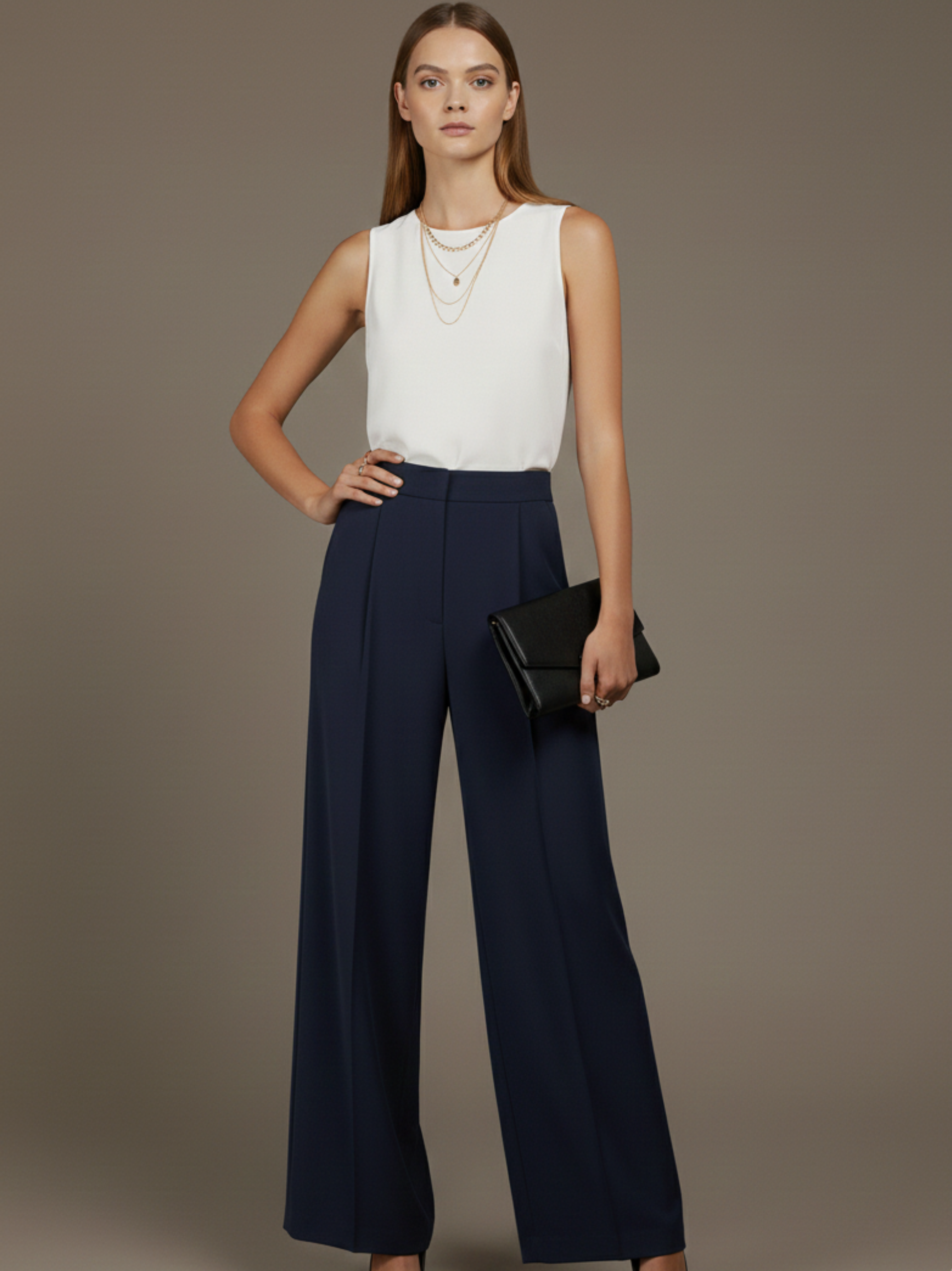 Esta é a nossa Calça Palazzo de Cintura Alta e Pernas Largas