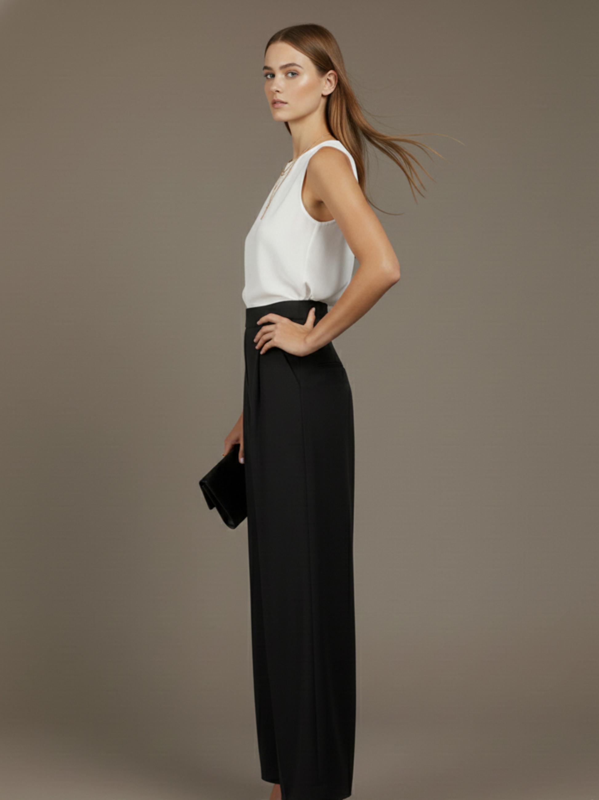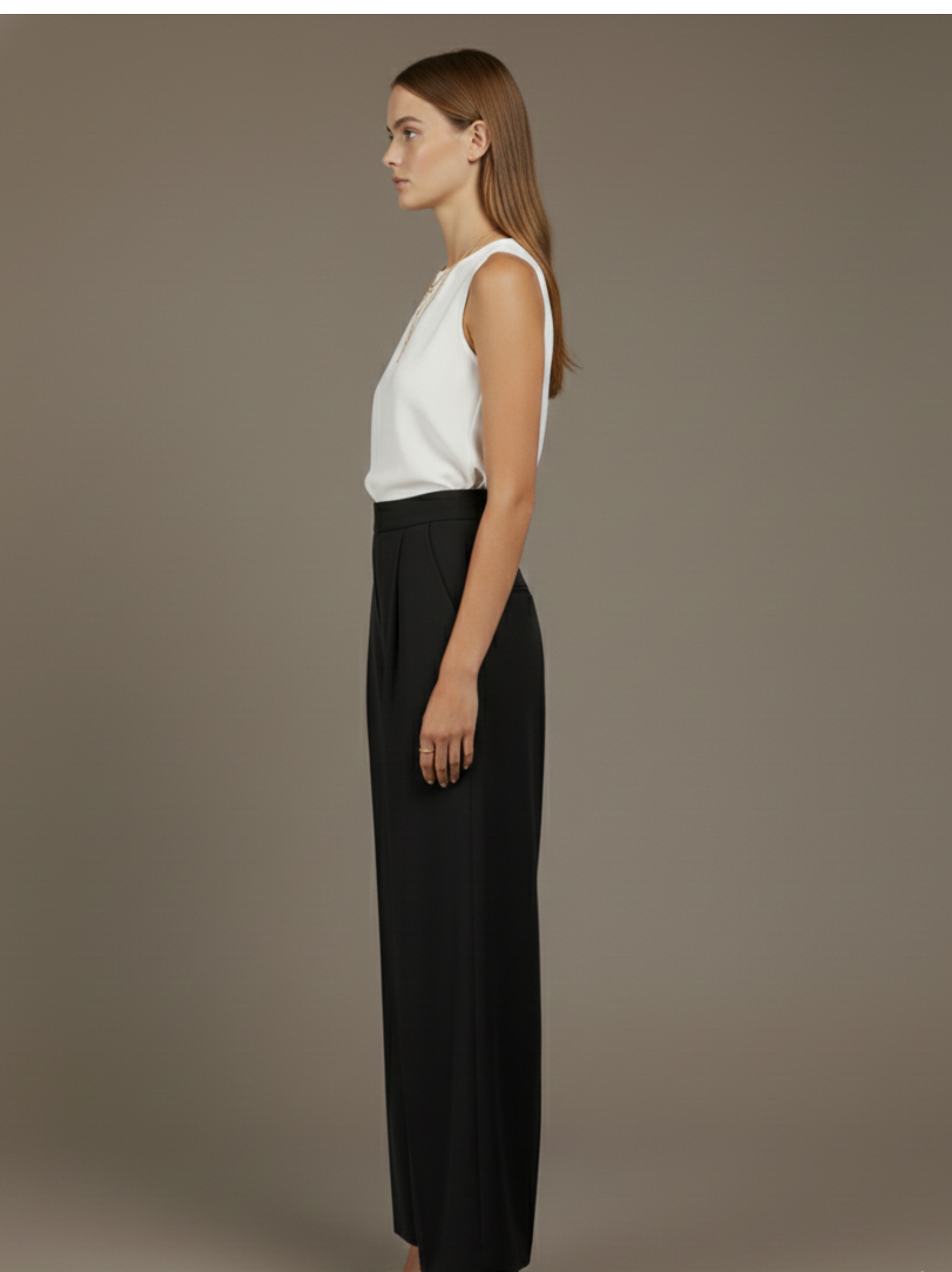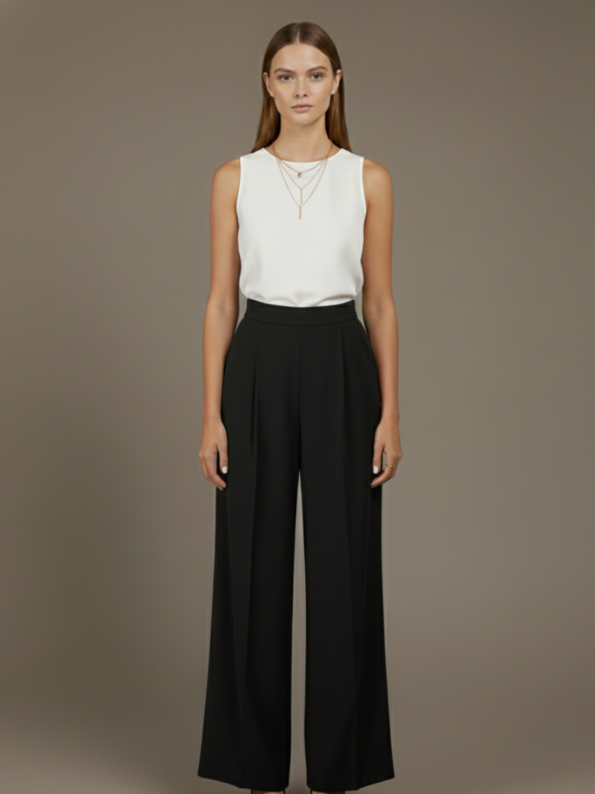 Esta é a nossa Calça Palazzo de Cintura Alta e Pernas Largas