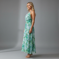 Bu göz alıcı çiçekli maksi elbiseyle doğanın güzelliğini kucaklayın. Askılı yakası ve canlı yeşil çiçek deseni, onu bir sonraki yaz etkinliğiniz için öne çıkan bir seçim haline getiriyor.